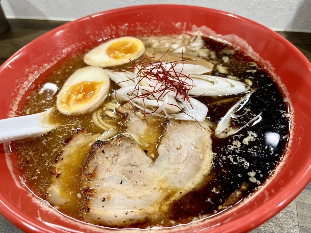 地元産の材料にこだわり、自家製ネギ油を使用しているため、香り高い一杯となっています。ここでは、お客さま自身でトッピングを選ぶスタイルも人気ですので、自分好みの一杯を作ることができます。
